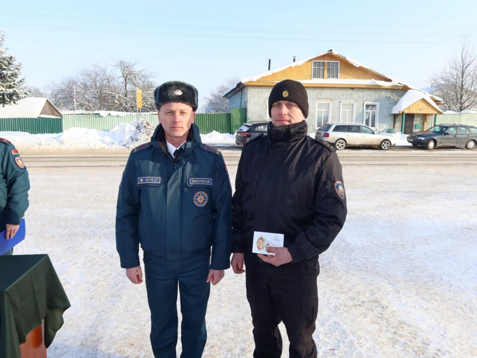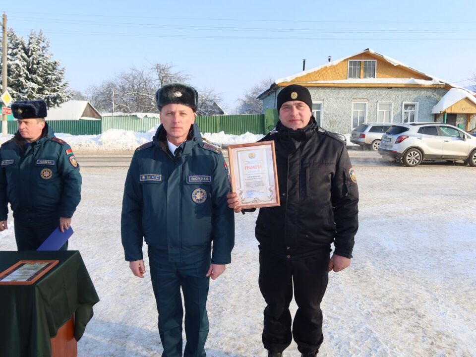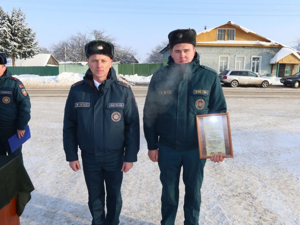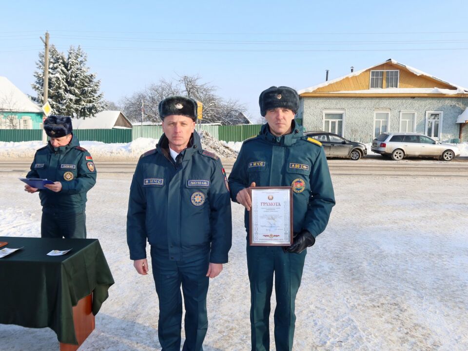 За образцовое несение службы и достижение высоких показателей в служебной деятельности были вручены награды. Нагрудным знаком Министерства по чрезвычайным ситуациям Республики Беларусь «Выдатнiк» был награжден старший прапорщик внутренней службы Хапанцев Василий Михайлович, старший инструктор-спасатель пожарной аварийно-спасательной части №1. Грамотой Министерства по чрезвычайным ситуациям Республики Беларусь удостоен старшина внутренней службы Сивиринов Дмитрий Анатольевич, старший инструктор по вождению пожарной машины-водитель пожарной аварийно-спасательной части №1. Памятным нагрудным знаком «165 год пажарнай службы» были награждены: подполковник внутренней службы Кулажин Максим Васильевич, заместитель начальника отдела; старший прапорщик внутренней службы Москалев Валерий Федорович, старший инструктор-спасатель пожарной аварийно-спасательной части №1; старшина внутренней службы Сиваков Артем Михайлович, также старший инструктор-спасатель пожарной аварийно-спасательной части №1.