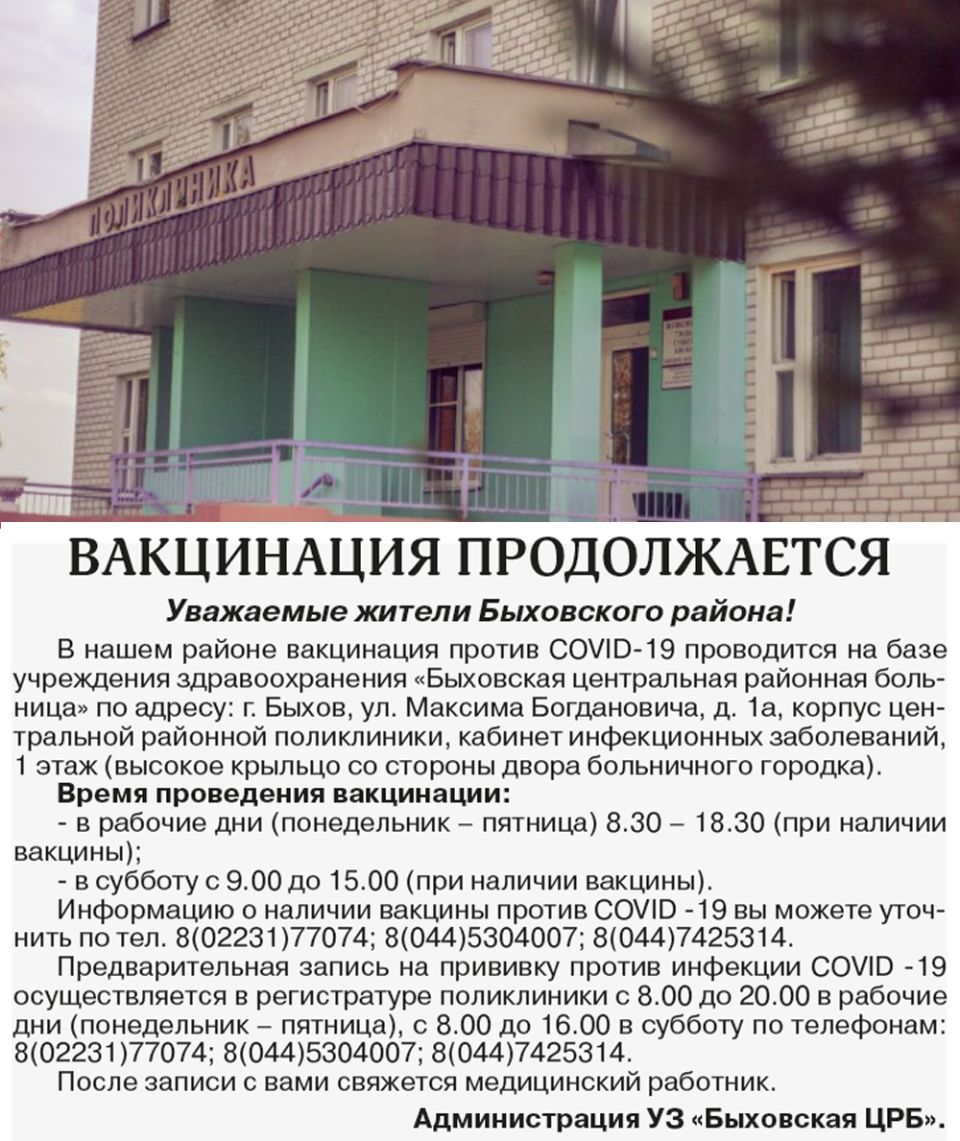 В Быховском районе продолжается вакцинация против COVID-19 tania 26 мая 2021 10:34 Теги БеларусьБыховБыховский районздравоохранениеМогилевская область