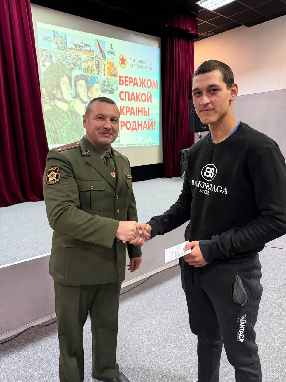 Будущих защитников Родины поздравили с этим значимым событием в их жизни управляющий делами райисполкома Виктор Хроменков, военный комиссар района Максим Томашов и председатель РО ОО «Белорусский союз ветеранов войны в Афганистане» Михаил Корзо.