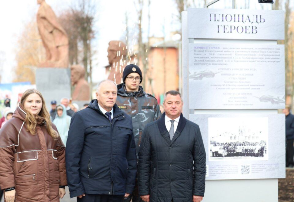 На обновленной площади, где увековечены имена Героев Советского Союза, мы отмечаем значимую дату. Это легендарное время, время героев, воспетое в стихах, романах и песнях. Жизнь летит по рельсам истории со скоростью локомотива, новые песни у наших современников, но неугомонная память всегда найдет повод напомнить о далёких тревожных годах, в которые жили и боролись наши деды!