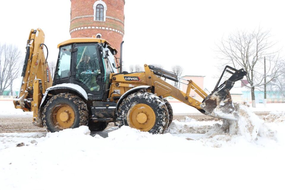 В Быхове и сельских населённых пунктах района продолжается уборка снега. ФОТОФАКТ