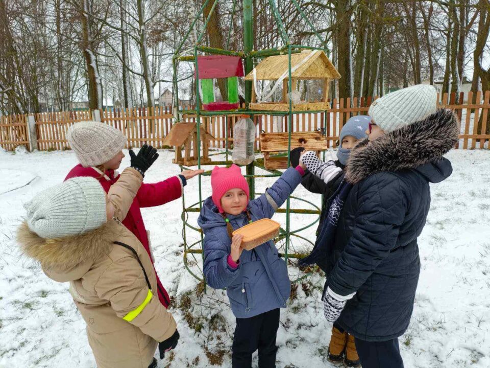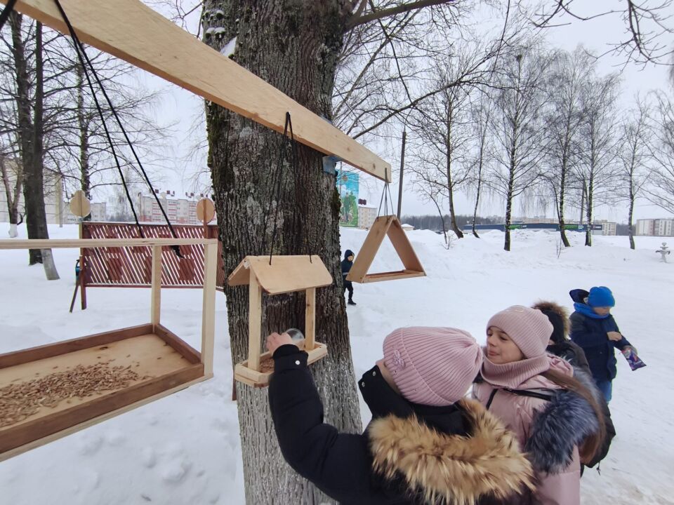 Помощь пернатым: активисты БСЖ и школьники Быховщины подкормили птиц зимой