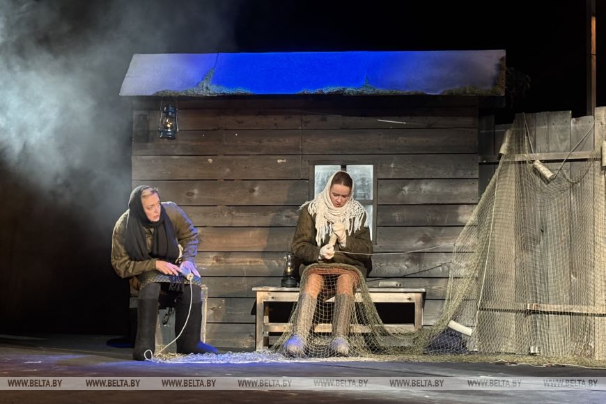 В ходе однодневных гастролей Томский театр еще утром показал на сцене Купаловского спектакль «У самого синего моря» — интерпретацию «Сказки о рыбаке и рыбке» Александра Пушкина. А вечером — постановку на более серьезную тему.
