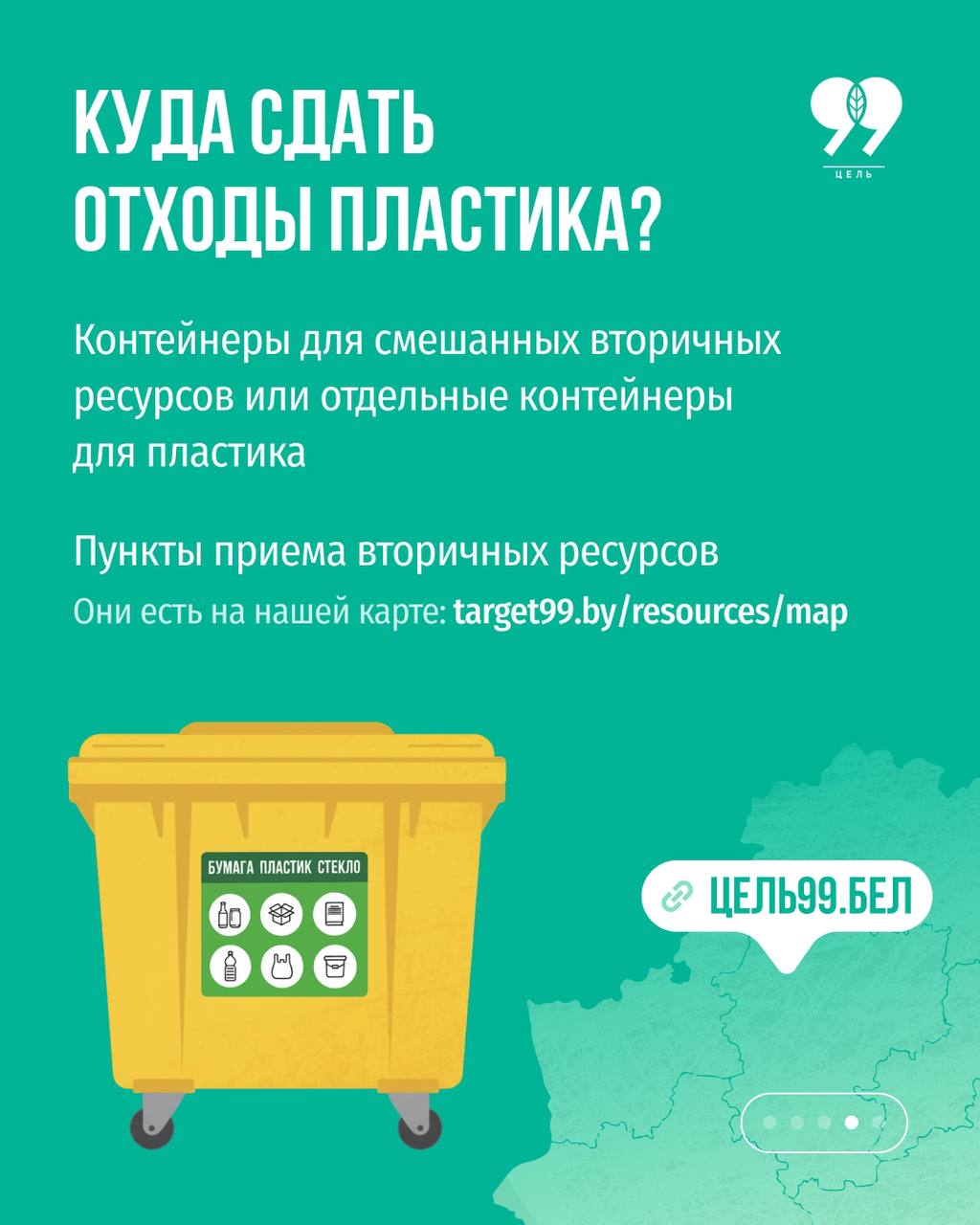 В Быховском районе установлены специальные контейнеры для пластика или смешанных вторичных материальных ресурсов (ВМР). Также работают пункты приёма ВМР. Найти ближайший адрес можно на интерактивной карте портала target99.by.